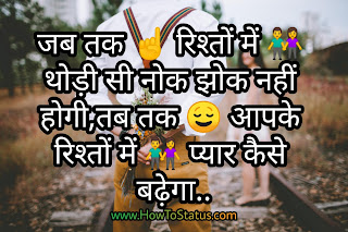 जब तक ☝ रिश्तों में 👫 थोड़ी सी नोक झोक नहीं होगी,तब तक 😌 आपके रिश्तों में 👫 प्यार कैसे बढ़ेगा..
