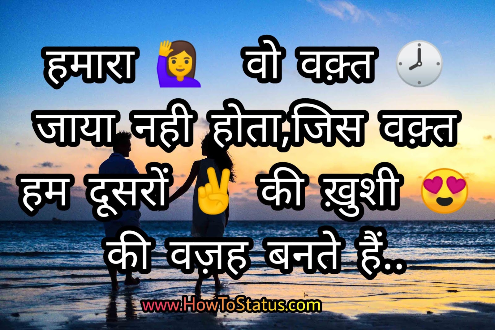 हमारा 🙋 वो वक़्त 🕗 जाया नही होता,जिस वक़्त हम दूसरों ✌ की ख़ुशी 😍 की वज़ह बनते हैं..