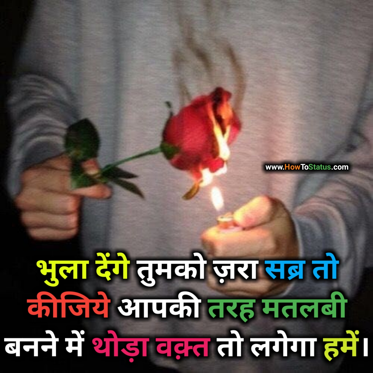 भुला देंगे तुमको ज़रा सब्र तो कीजिये , आपकी तरह मतलबी बनने में थोड़ा वक़्त तो लगेगा हमें।#HowToStatus