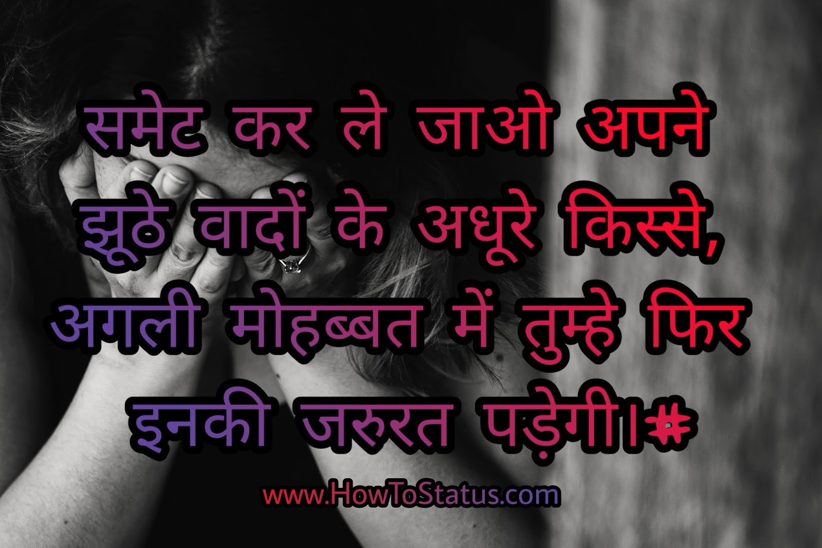 समेट कर ले जाओ अपने झूठे वादों के अधूरे किस्से,अगली मोहब्बत में तुम्हे फिर इनकी जरुरत पड़ेगी।#HowToStatus