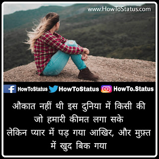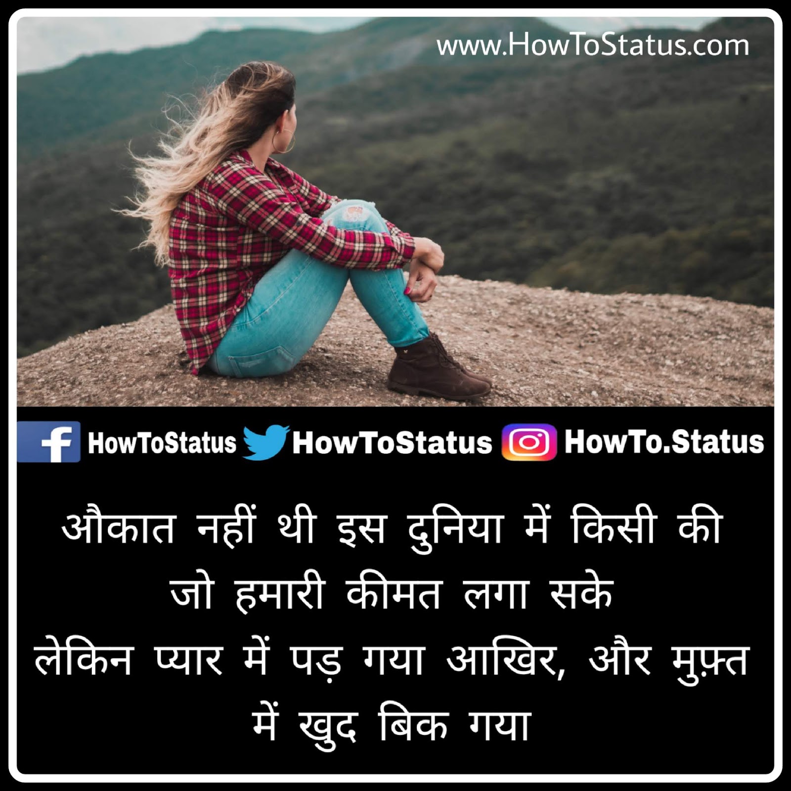 औकात नहीं थी इस दुनिया में किसी की जो हमारी कीमत लगा सके लेकिन प्यार में पड़ गया आखिर, और मुफ़्त में खुद बिक गया
